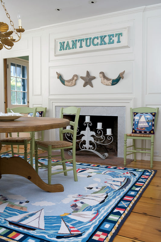 A collection for sailing enthusiasts, with patterns inspired by sailboats gliding on ocean waves, in nautical blues, whites, and reds.
