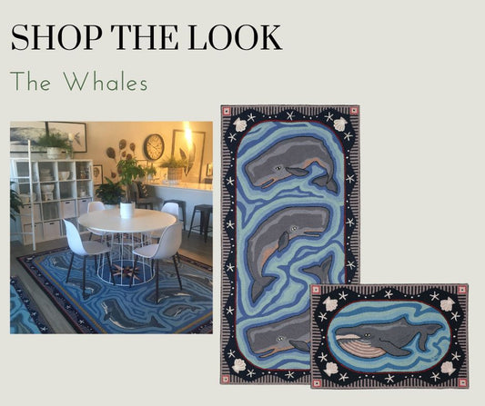 Celebrate the majesty of the ocean with this collection of rugs featuring whales. Deep navy, aquamarine, and whites bring the ocean to life.