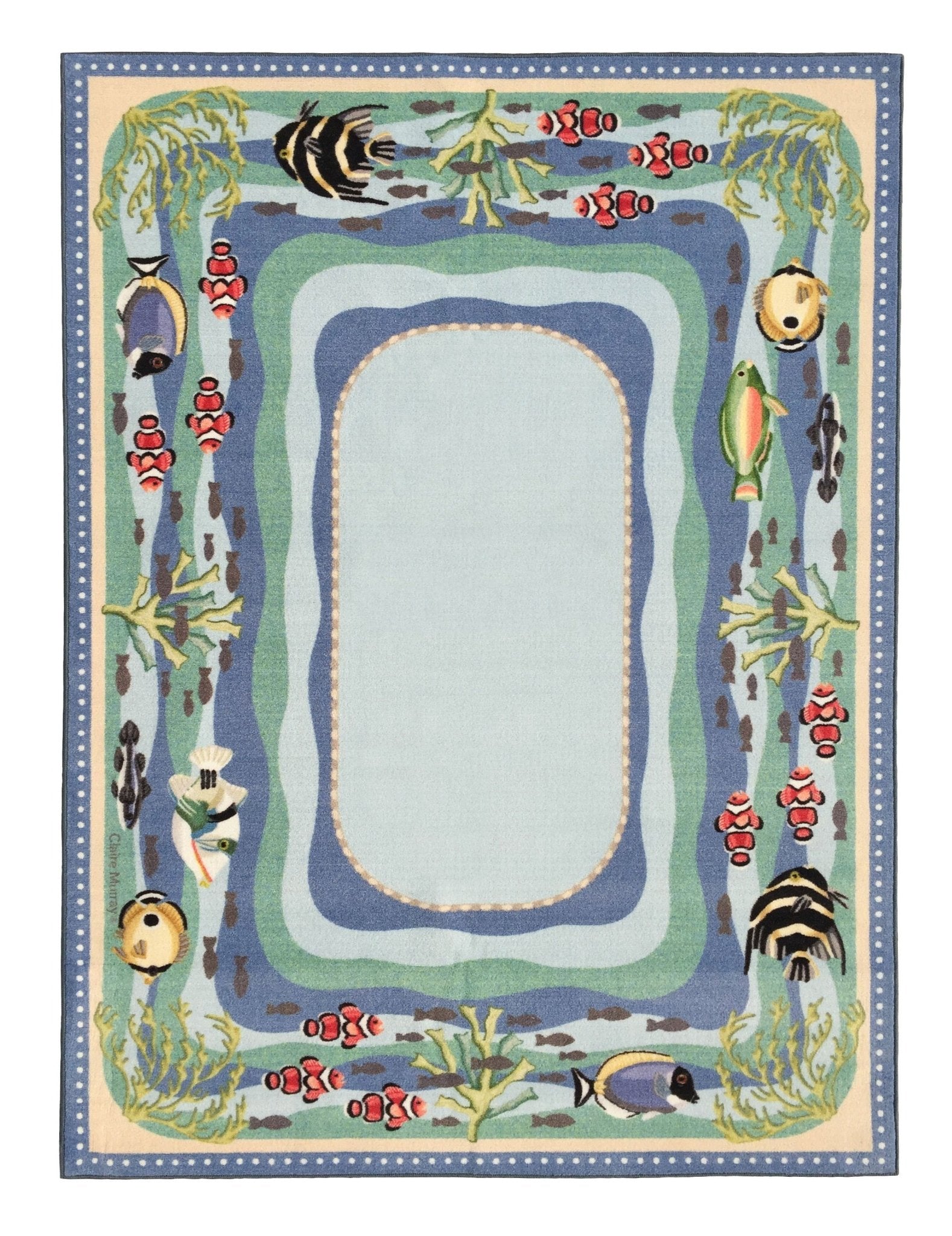 A Claire Murray washable rug is a beautifully crafted rug designed with coastal themes, featuring motifs like lighthouses, seashells, marine life, and floral patterns. Made from durable, easy-to-clean materials, these rugs blend artistry with practicality, making them perfect for adding a touch of seaside charm to any room while being low-maintenance and suitable for everyday use.