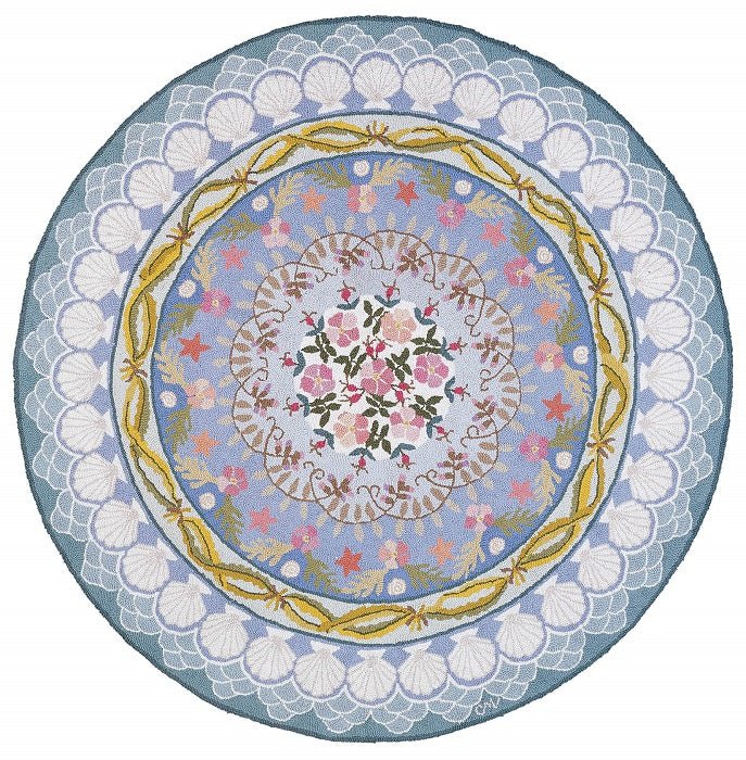 A vibrant coastal garden scene with colorful flowers in pinks, yellows, and blues, set against soft green foliage and a sandy backdrop, evoking a serene seaside retreat.